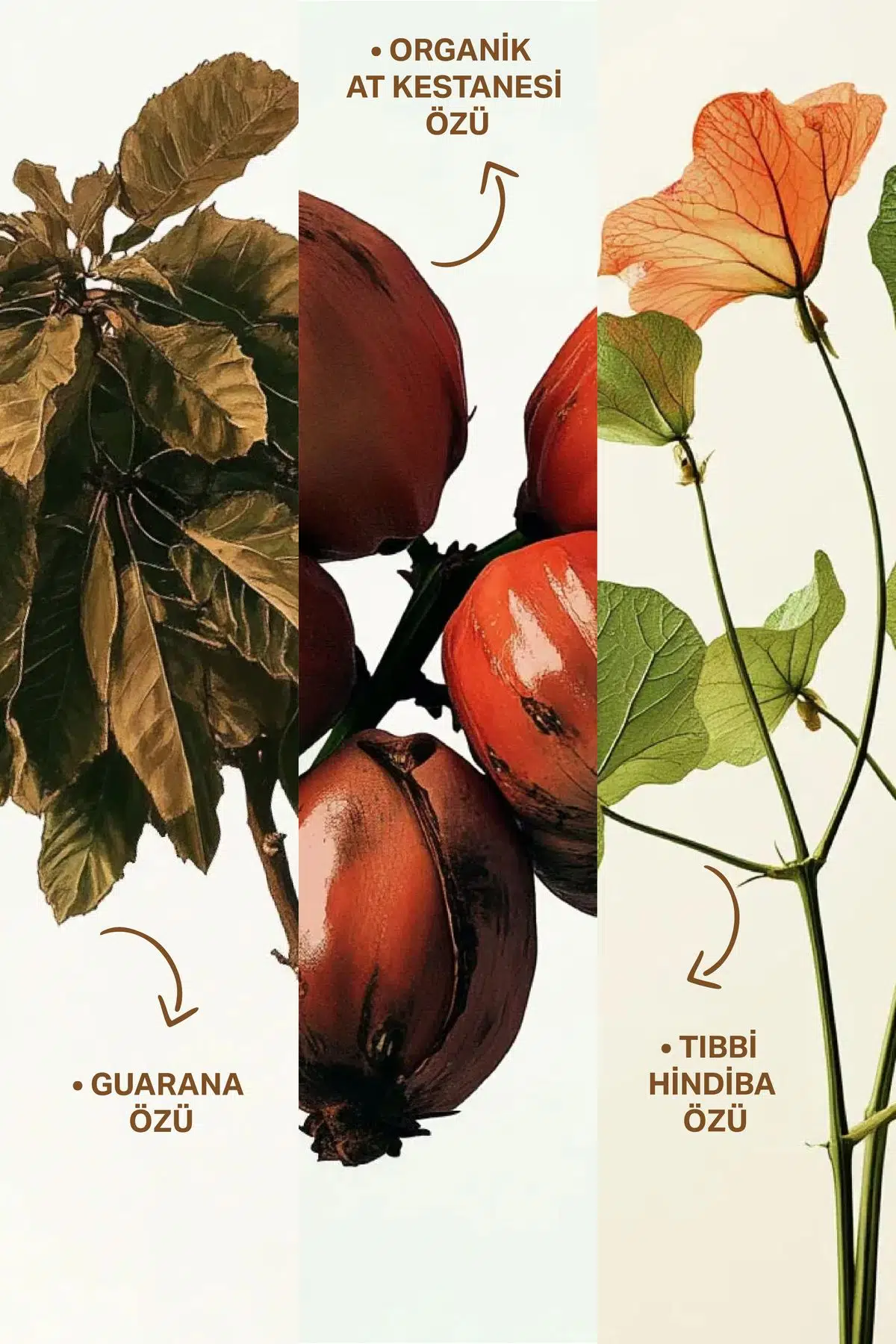 Etken Maddeler: Organik At Kestanesi özü, Guarana özü, Tıbbi Hindiba özü.