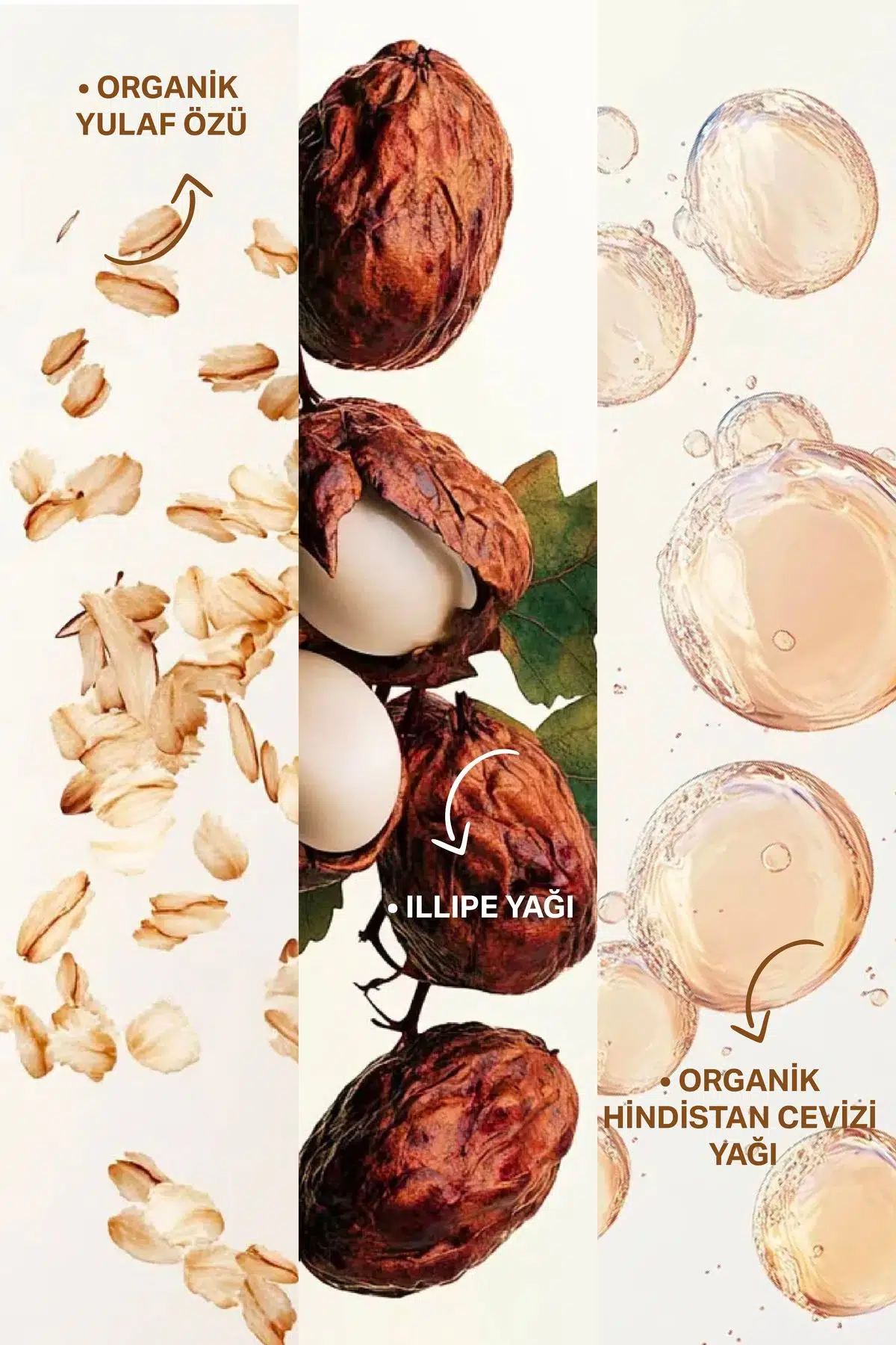 Etken Maddeler: Organik Yulaf özü, Illipe yağı, Organik Hindistan Cevizi Yağı.