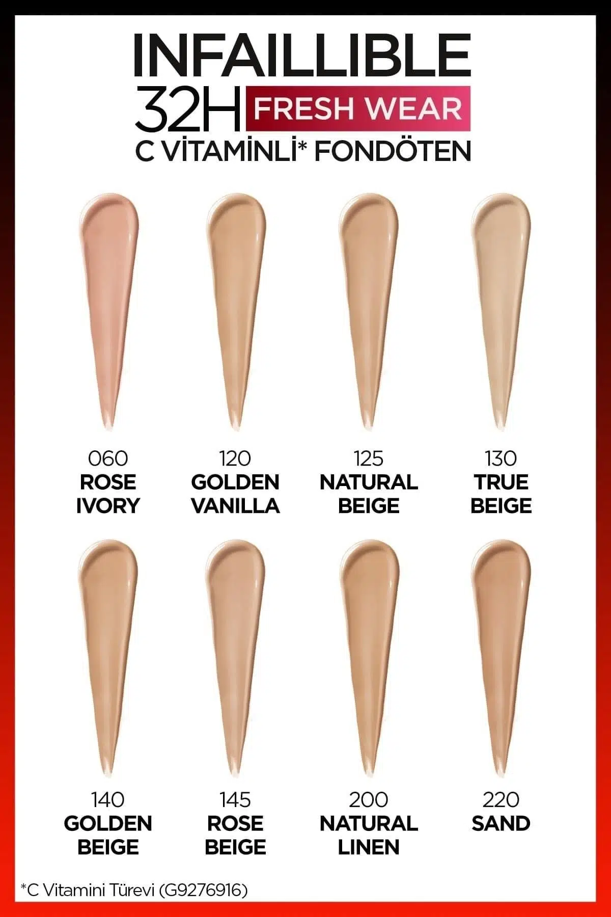 | Etiketler | L'Oreal Paris L'Oréal Paris Infaillible 32H Fresh Wear C Vitaminli Fondöten - 220 Sand |