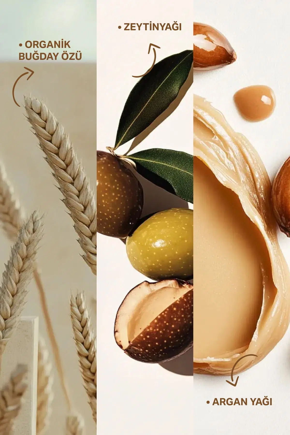 Etken Maddeler: Organik Buğday özü, Zeytin yağı, Argan yağı.