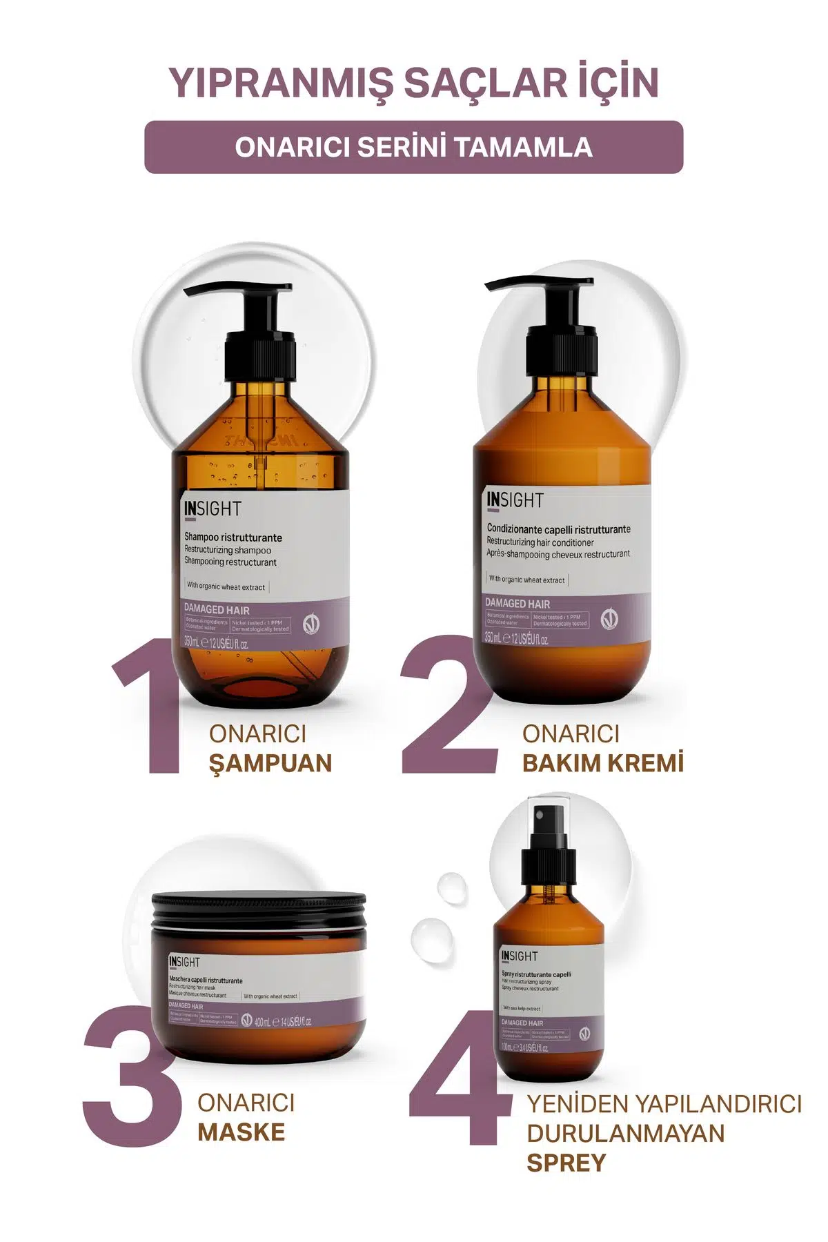 ONARICI ŞAMPUAN Yıpranmış saçlar için formüle edilmiş, yeniden yapılandırıcı etkisi olan şampuandır.